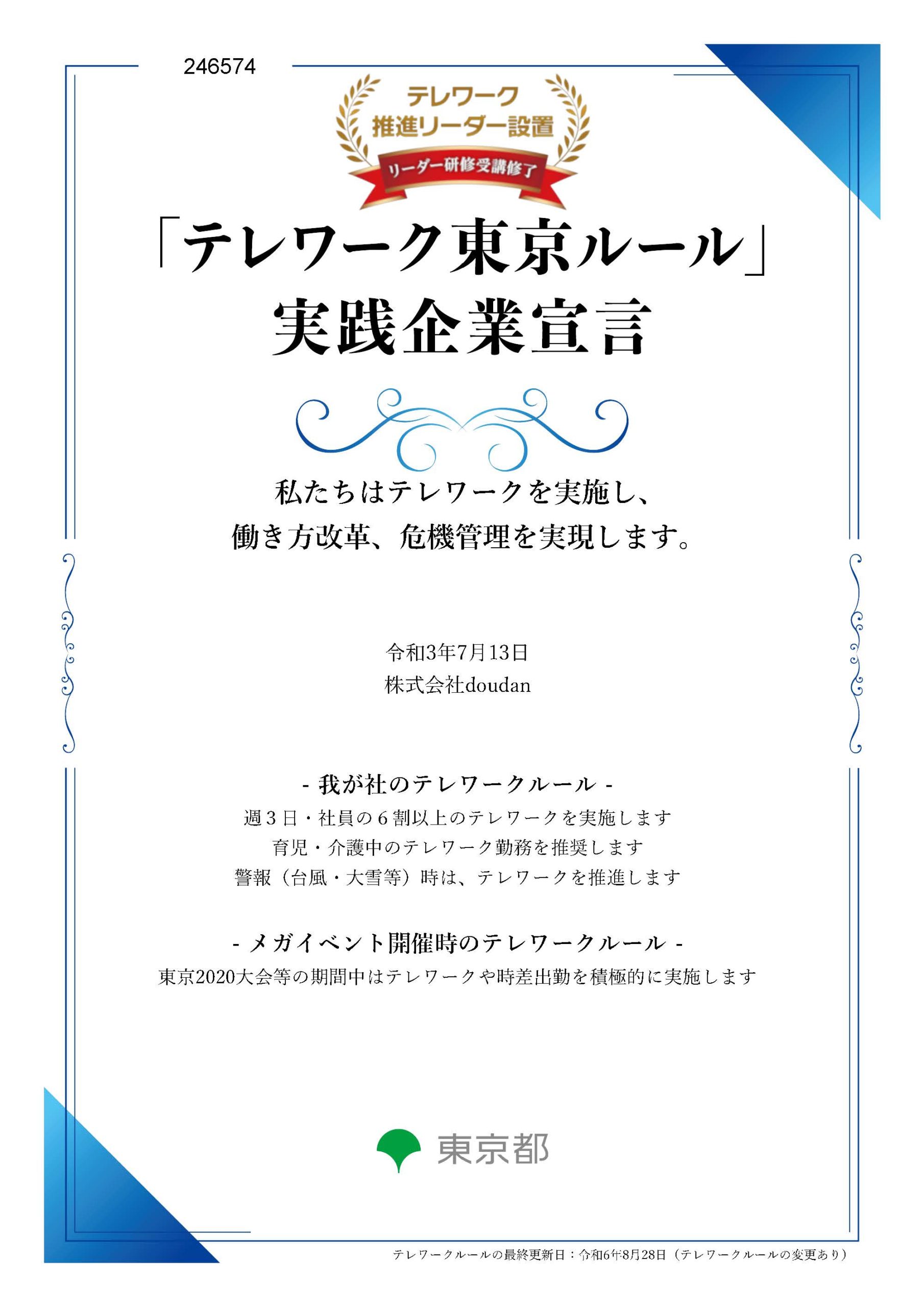 我が社は、「テレワーク東京ルール」実践企業として、テレワークルール